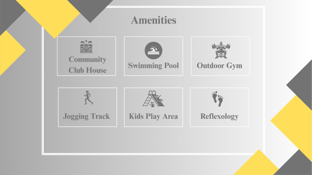Residents can enjoy a rejuvenating morning walk on the beautifully laid nature trail or spend their evenings in the outdoor fitness zone that overlooks landscaped gardens. The multipurpose court offers the perfect spot for a quick game with neighbors, while the lush lawns serve as the perfect venue for community gatherings and celebrations. The kids’ play area has been designed to ensure both safety and fun, giving parents peace of mind as their children explore and interact.
