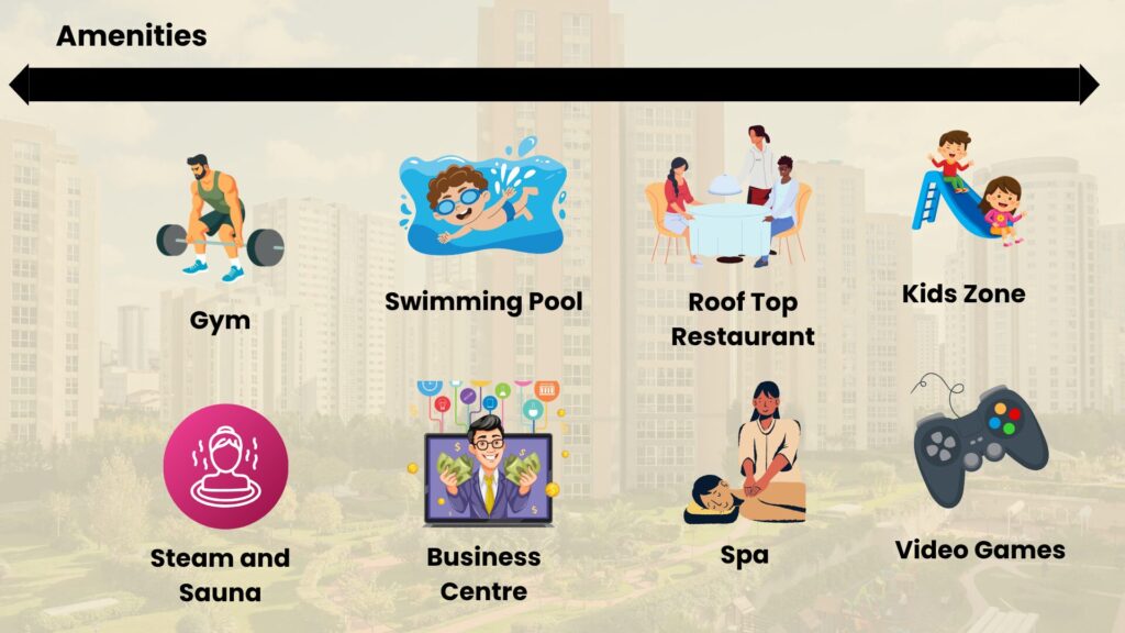 Health and wellness facilities include a fully equipped gym, jogging tracks, yoga zones, and children’s play areas. These amenities encourage active, holistic living while fostering a sense of community among residents.