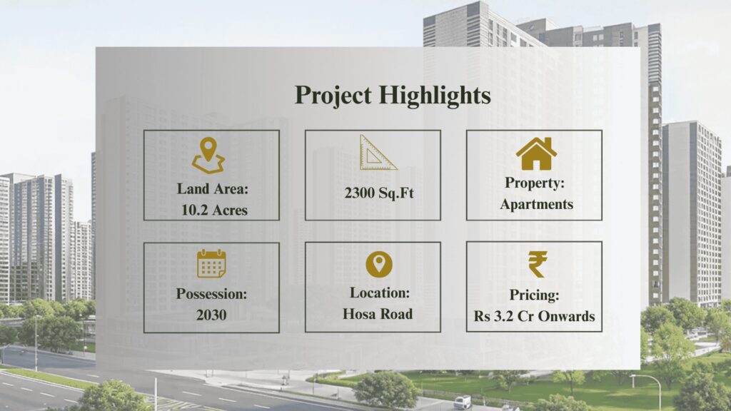 Situated near Manyata Business Park, the project benefits from steady rental demand and strong capital appreciation potential. Connectivity to tech hubs, schools, and entertainment makes it highly attractive for professionals and families.
